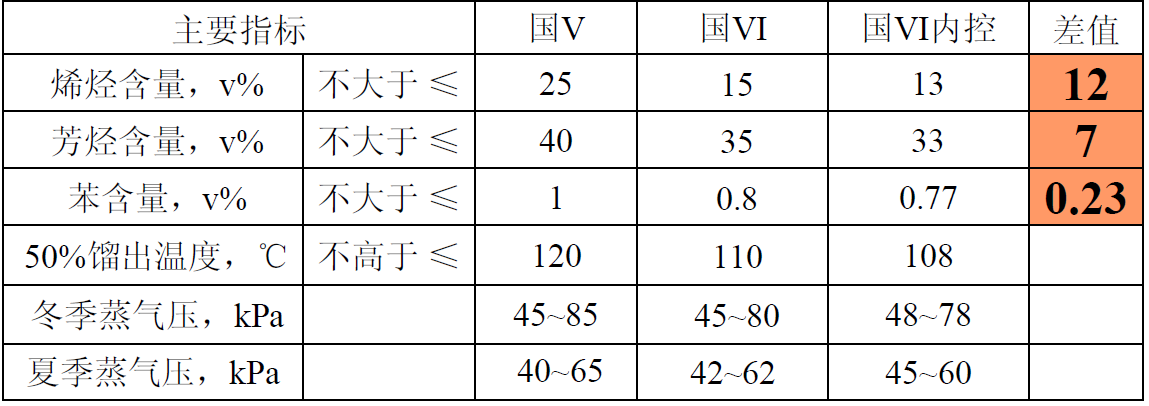 分析得出指標升級的重點在于降烯烴與芳烴。并且烯烴在燃燒過程中生成-CH-、CO自由基,與大氣中灰塵結合形成PM2.5,造成環境污染。