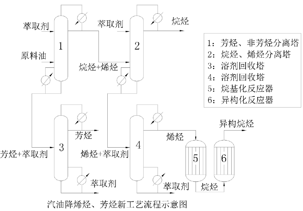 為了滿足國Ⅵ汽油新標準中降低烯烴與芳烴的要求,我單位開發了烯烴分離后進行烷基化與異構化的聯合新技術:烴分離+烷基化+異構化