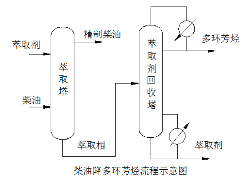 溶解度差異:多環芳烴與烷烴組分在不同溶劑中的溶解度不同,所以可以采用抽提工藝技術實現萘系與烷烴組分的分離。