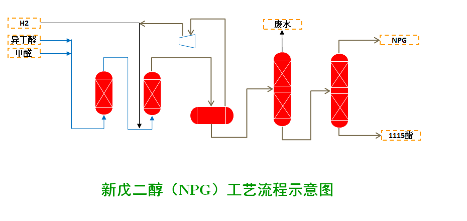 工藝流程如上圖所示我公司在羥醛縮合反應中采用固體堿催化以及在加氫步驟中采用固定床催化劑使裝置可以連續操作并且催化劑壽命長。